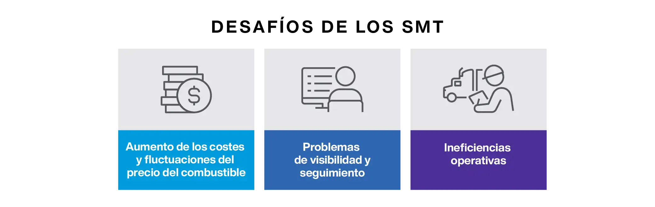 Los retos que plantea la gestión del transporte cuando se aborda mediante sistemas de gestión del transporte heredados o aislados incluyen el aumento de costos y consumo de combustible, la falta de visibilidad y seguimiento, y la ineficiencia operativa.