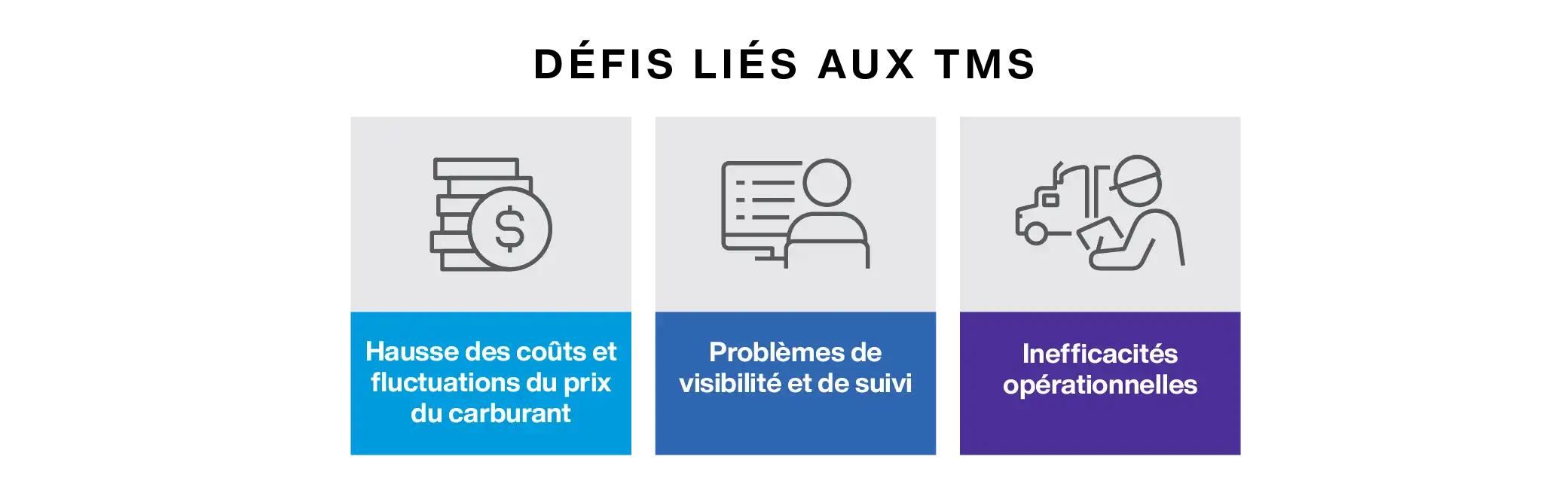 Les difficultés principales, souvent liées à l’utilisation de TMS obsolètes ou cloisonnés, incluent : la hausse des coûts et de la consommation de carburant, un manque de visibilité sur les flux, et des inefficacités opérationnelles.