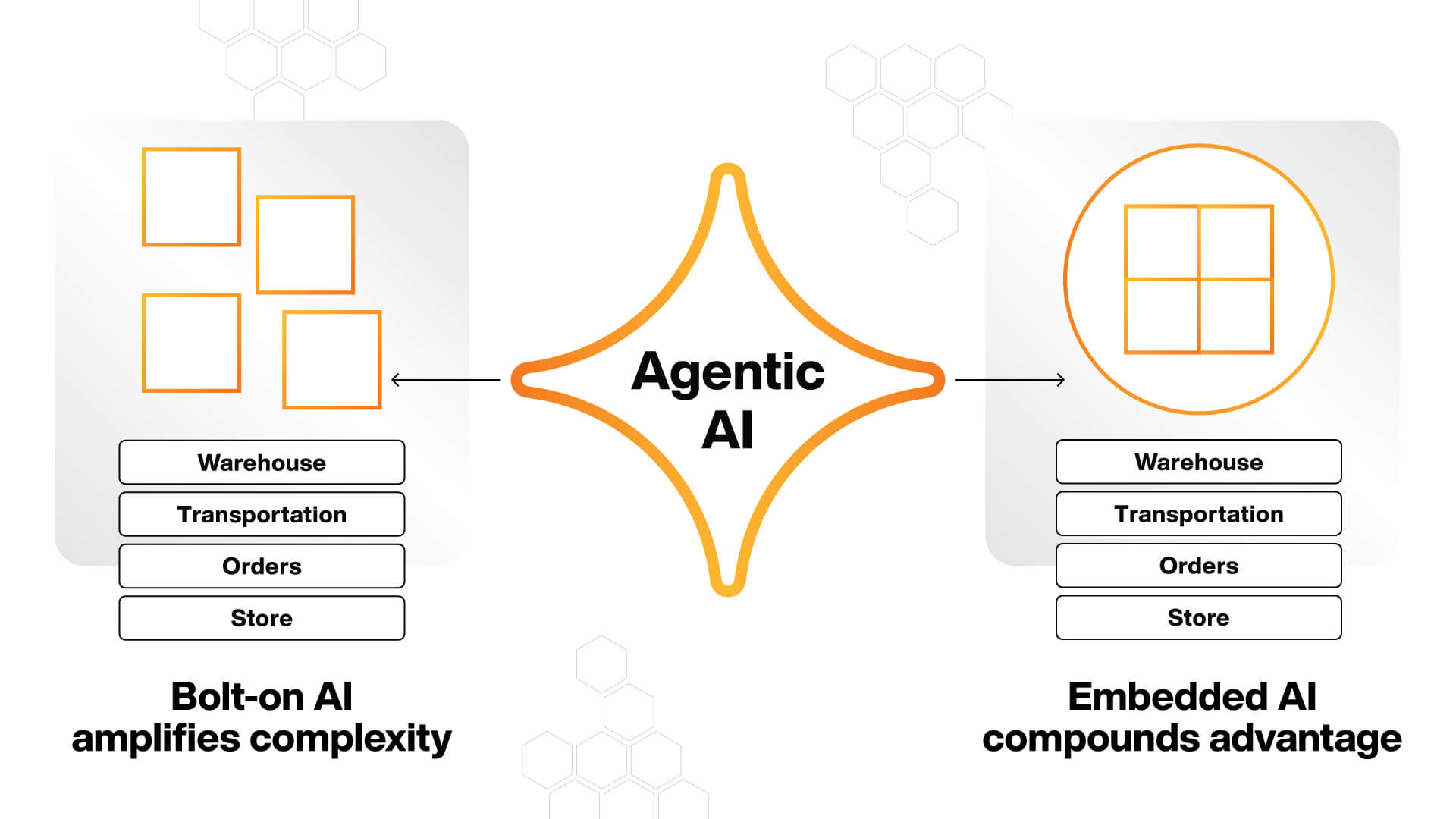 However, API-first, unified, cloud-native software is where agentic AI thrives, and the value of this kind of extensible, resilient software will explode. With agents living inside the systems that own the work—as well as having native access to real-time data and executional APIs, AI performs its best. Agents can be configured to think, see, and do a vast amount of tasks in your supply chain, but they still need to work in conjunction with a robust, structured software solution to actually execute those tasks.